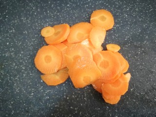 烧一锅水,水开后放入藕片和红萝卜片