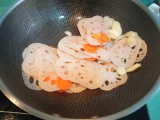 放入焯过水的藕片翻炒一会