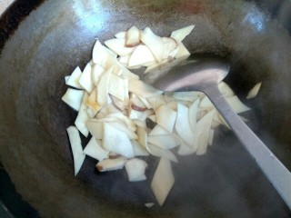 锅中放入少量清水,放入杏鲍菇,炒软,盛出待用
