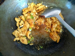 放入一勺生抽翻炒均匀