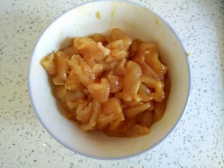 加鸡肉中加入一勺,一勺 ,一勺淀粉,搅拌均匀,腌制一会儿
