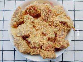 排骨里有油有调料了,又腌制了半小时,而且肋排又是有油的,在蒸的过中油与调味料会慢慢渗透到米粉中,成品相当软糯
