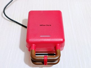 三明治机器连接电源,将上下的烤盘刷上少许食用油。