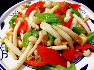 晶莹剔透的白玉菇,配上红绿相间的青椒,简单的小炒素菜。 营养健康减脂又美丽。