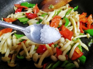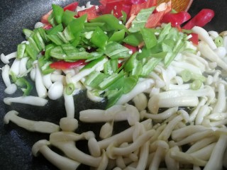 白玉菇放入锅内炒一分钟即可。