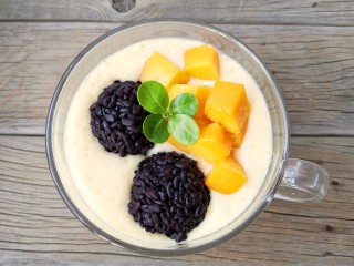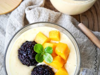 在广东、香港, 大街小巷, 甜品店满目皆是, 足见人们对甜食的偏爱。 在高温的夏季, 酷暑吞噬着城市的每一个角落, 人们走在街头通常想到的是找一家店, 能喝上一杯让身心舒畅的冰凉饮品。 平衡一下身体的热气, 那该是多美妙的享受。 而最受欢迎的港式甜品中, 芒果黑糯米甜甜是必点的, 芒果的清香,黑糯米的软糯, 都让人沉醉不已。 囡姐今天分享给大家的这个好看又好吃的黑糯米甜甜,却是低卡低脂的可以放肆吃的甜品,学会它从此不再去甜品店。