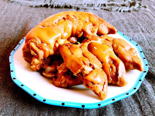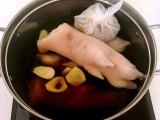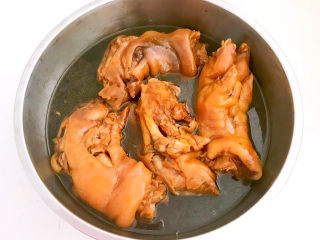 猪蹄能用筷子轻松穿过就熟了,不要马上把猪蹄捞出来,猪蹄要在汤汁里面自然晾凉,这样味道更佳