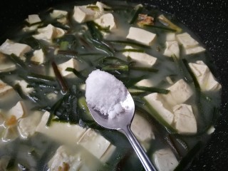 - 豆腐下锅过水,去除逗腥味。海米煎出香味烧汤鲜美