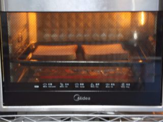 面包切片放在烤箱中层,上下180度,烤3~5分钟。或者用微波炉加热30秒。