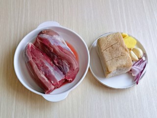 牛肉焯水,冷水下锅,大火烧开,煮3分钟,捞出用温水反复冲洗,淋干水分备用。