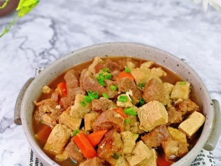 今天与大家分享的是牛肉炖豆腐,用的是冻豆腐,前两天买了北豆腐,放冰箱里速冻哒~豆腐营养丰富,含有人体需要的蛋白,牛腱子富含蛋白质,氨基酸组成比猪肉更接近人体需要,能提高机体抗病能力,强身建骨,豆腐吸收了牛肉的汤汁,味道一级棒。
