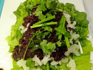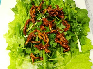 也可以把这些食材放到盆里搅拌均匀再放到生菜上,这样味道更均匀