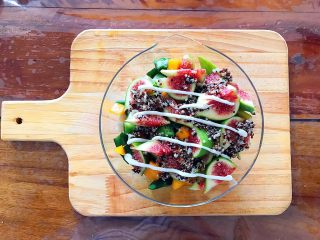 大鱼大肉吃多了,芽芽就会很想吃点沙拉,来减轻身体的负担!藜麦和秋葵的好处不用芽芽多说了,再加上各种时令水果,不仅仅是美味那么简单,最重要是对身体好呀! 请一定要看小贴士!