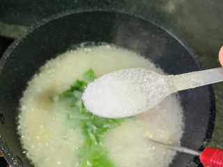 加少许味精,蛤蜊干带有咸味,就不用加盐了,搅拌均匀,出锅;