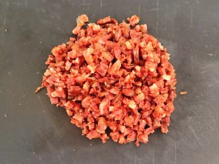 把煮熟的腊肠切成小丁