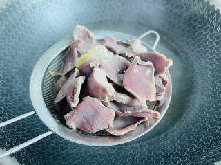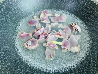 锅中加水、、生姜入鸡胗焯烫一分钟
