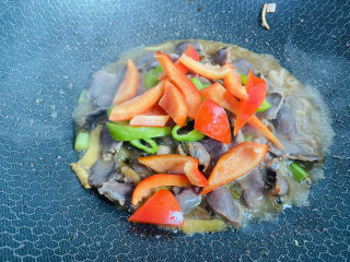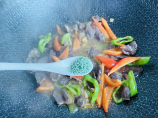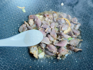 倒入鸡胗翻炒片刻