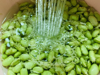 毛豆用水冲洗干净