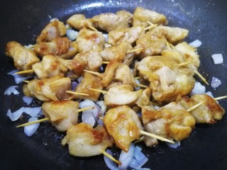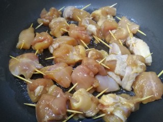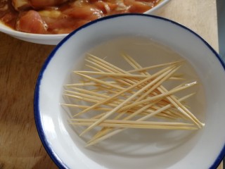 牙签串好肉块儿。