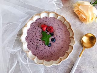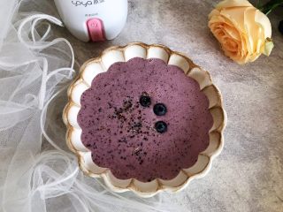 将糊糊倒入你所喜欢的器皿内,摆放上留出备用的蓝莓,再随意撒上留出备用的藜麦