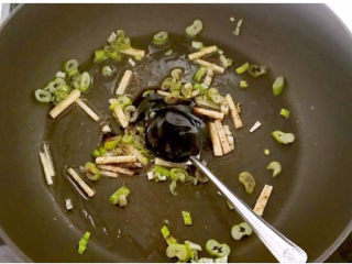 炒锅烧热后加入大豆色拉油,油烧热后加入姜丝和葱花