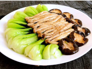 青菜炒香菇清淡适宜,底油少盐,营养丰富,不加任何香料,老少皆宜,减肥的小伙伴不要错过呦~