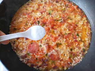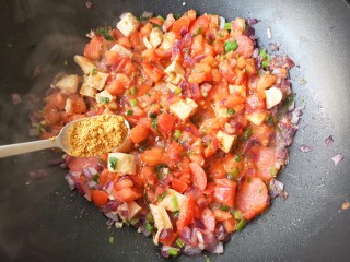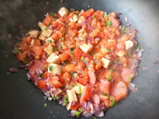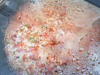 将番茄炒成酱出汁。