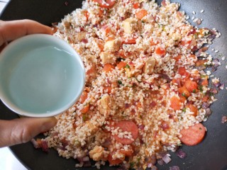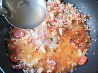 加入米,翻炒均匀。