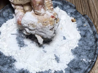 腌制好的排骨裹满干淀粉