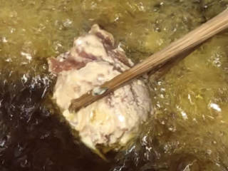 放入6成热的油锅中,炸至变色后关小火炸5分钟