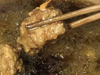 小心点放入排骨,炸几秒钟捞出