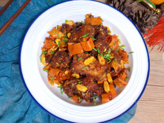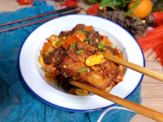 放入香脆椒和排骨,翻炒均匀至入味