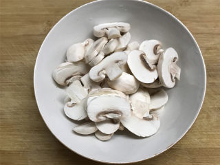 蘑菇用软的刷子刷洗掉表面的的脏物,清洗干净后切成片。