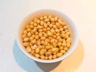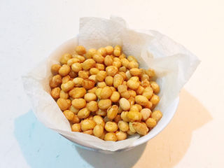 炒锅烧热后加入大豆色拉油,油烧热后加入泡发好的的黄豆,小火炸制