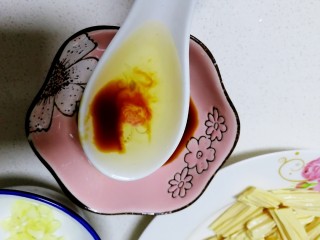 斜切成段,开水里烫一下,攥干水份。