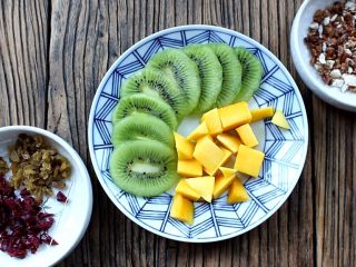 放入蔓越莓干,葡萄干和杏仁,小核桃