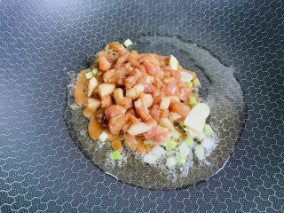 倒入腌制好的猪肉