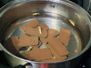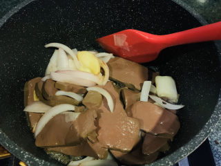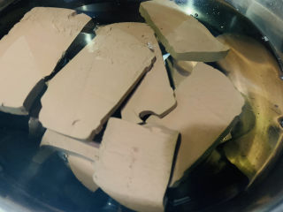锅里加和姜丝,将鸭血先冷水下锅,煮沸,焯水,去腥;