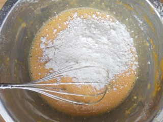 将面粉过筛加入南瓜汁中