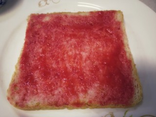 一片全麦面包片上涂上适量。