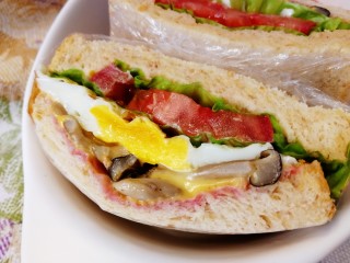 盖上另一片吐司,保鲜膜包紧。
