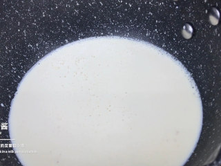 奶锅中加热至冒起小泡