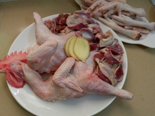 买的时候拜托老板帮忙砍两半,然后自己回家洗干净就行了。 多的鸡胗鸡脚是一只鸡自带的不够炒不够炖的,单独再买点,给大爷整个下酒菜!大爷说最近我减肥都不好好给他弄吃的了!摔!没吃好也没见你掉肉!