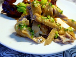 另半边如果嫌味道不够,可以做个葱姜油来配。 葱姜油做法,姜蓉,葱花,热油泼,加盐调味儿就行了。喜欢生抽就加点也没所谓。别嫌弃这半边做法简单,真的好吃!