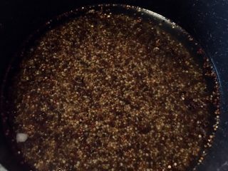 将藜麦沥干水份倒入锅中,再倒入920克水熬煮藜麦20分钟,这是煮好的状态。