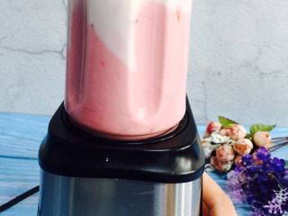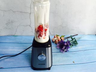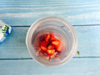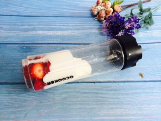 草莓块放入榨汁机里