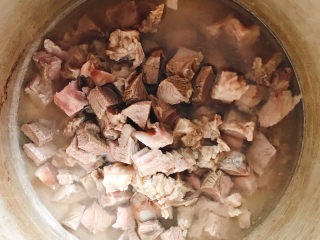 牛腱子肉冲洗干净后,放入锅中,加入清水、