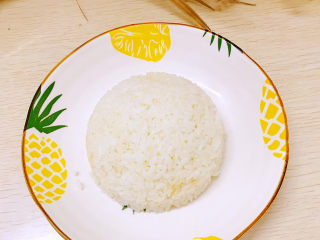 准备好一碗白饭倒扣在盘子上,取掉装米饭的碗。