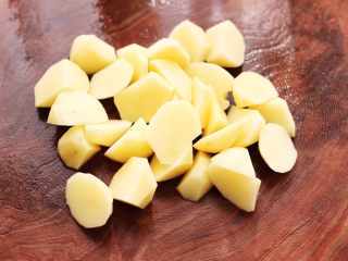 去皮后,洗净用刀切成菱形块。