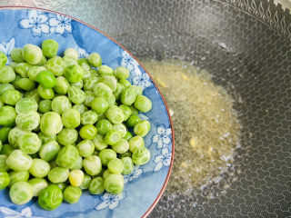 锅中加入清水大火烧开放入豌豆粒焯烫片刻捞起沥干水分